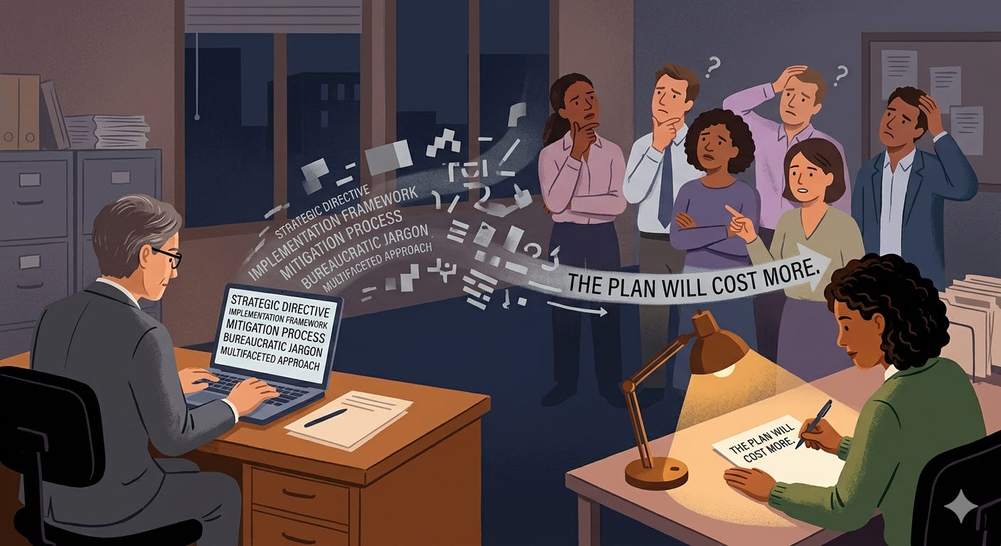 Government communications, by contrast, often operates under a different kind of pressure: the pressure to offend no one. This produces language that is technically defensible but practically useless. Words like “a range of stakeholders,” “ongoing dialogue,” and “evidence-based approach” communicate nothing, not because the people writing them are incompetent, but because the approval processes that produce them reward caution over clarity.
